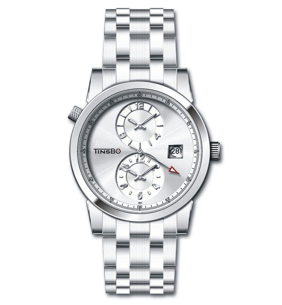 银白,双机芯二小眼+日历显示